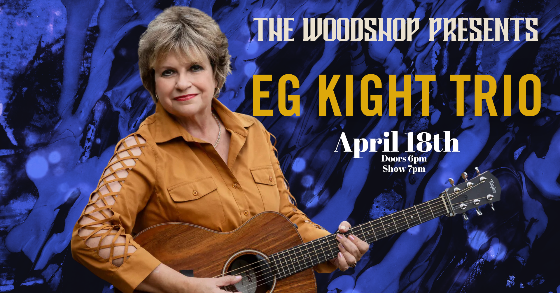 A preeminent voice in roots music, EG Kight has performed on stages from coast to coast—from the Bluebird Cafe in Nashville, TN, to the Monterey Bay Jazz and Blues Festival in CA, to the Chenango Blues Festival in NY, from the Cox Capitol Theatre in GA to the Griswold Auditorium in MI, to the Strand Theater in PA, and many more. Kight is at home on any stage. With her rich vocals, captivating guitar style, and hefty catalog of well-crafted original songs, she has entertained audiences around the globe in true southern style, and has garnered 21 music industry nominations, including three for Song of the Year.