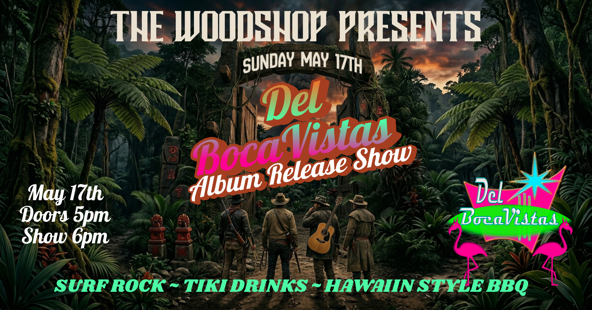 Del Boca Vistas is an original instrumental 4 piece band. This album release celebration will include smoky BBQ, and an island infused menu takeover at The Woodshop with bright, summery tiki drinks.