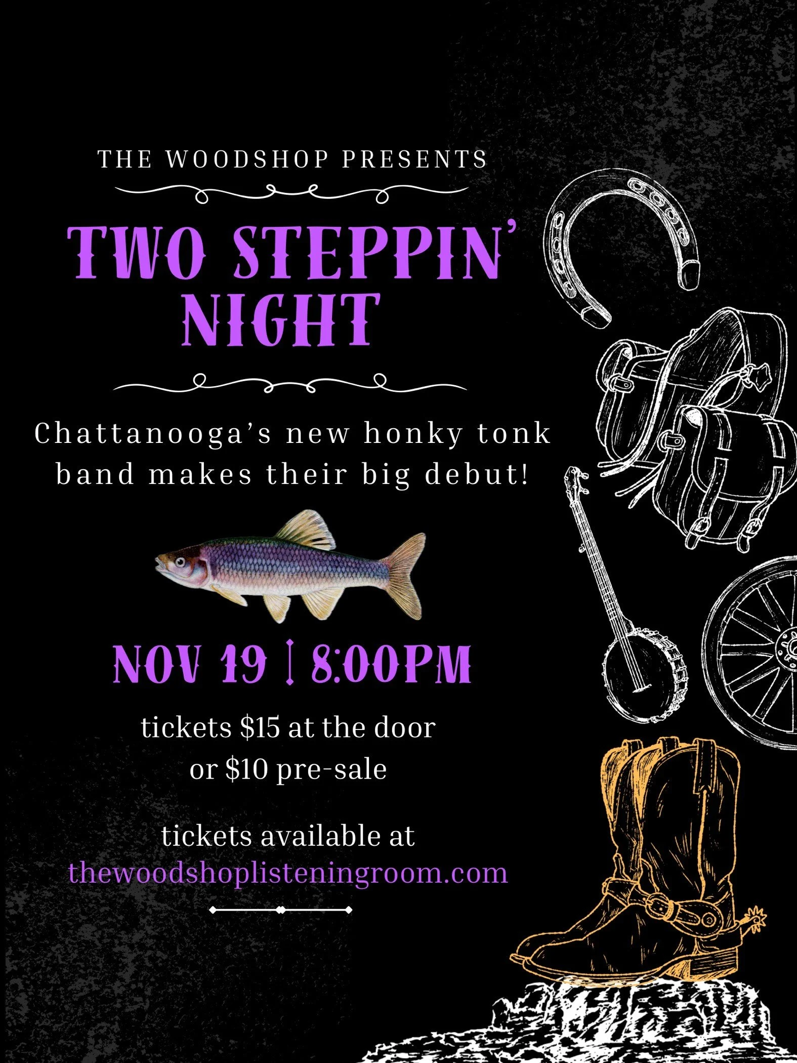 Come on down to The Woodshop on November 19th for a night of two-stepping — and be part of the surprise reveal of Chattanooga’s newest honky-tonk band!